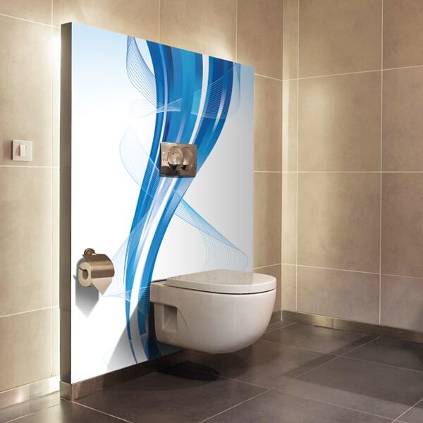 Le panneau mural salle de bains onde bleu installe une ambiance fraîche et apaisante grâce à un décor abstrait composé de lignes ondulées fluides. Les courbes se superposent et créent un mouvement continu qui structure le mur tout en apportant une grande légèreté visuelle.